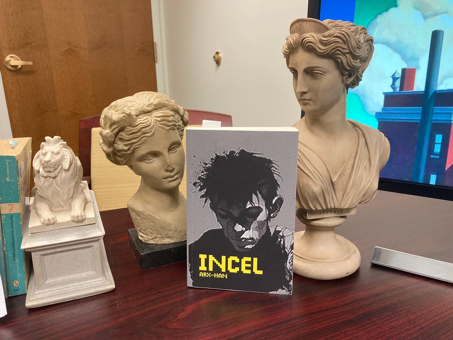 ARX-Han: There’s a ton of process here that I could get into but I’ll try and summarize the experience for me. The first thing to flag is that I basically learned to write a novel as I was writing this novel. INCEL is in fact my first fully finished work—an abandoned science fiction novel aside—and it’s something I almost entirely gave up on around 2018.